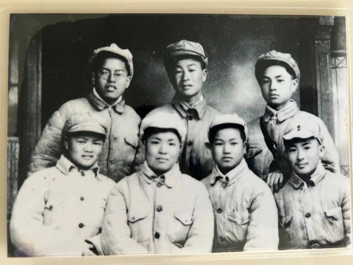 采訪中,劉暉小心地從文件袋中取出一張張老照片,向記者講述背后的故事。其中一張是1949年3月,劉暉與戰友們在部隊休整間隙拍下的合影。她一直珍藏這張照片,畫面中,定格了他們青春年少、英姿颯爽、滿懷革命理想的模樣。