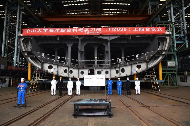 ????3月30日,由中國船舶集團七〇八所設計、江南造船建造的中山大學海洋綜合科考實習船順利上船臺。該型船是國內目前最大的海洋綜合科考船,總長約114.3米,排水量約6800噸,續(xù)航力15000海里,入級中國船級社(CCS);具備B3冰級加強,采用直流母排+蓄電池儲能技術,配有齒輪全回轉主推進裝置、輪緣永磁側推裝置,具備DP1動力定位能力,是一艘配置高、能力強、創(chuàng)新技術高度集成的新一代大型海洋綜合科考船。