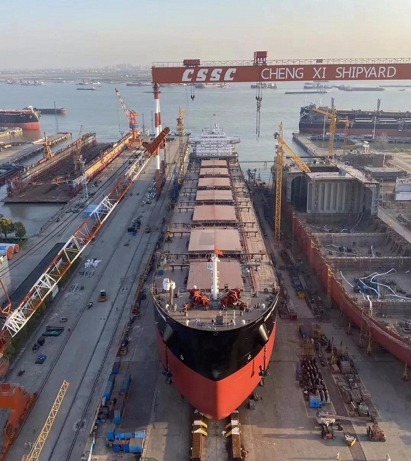 ????4月7日,中國(guó)船舶集團(tuán)旗下中船澄西為香港華光船務(wù)建造的42號(hào)8.2萬噸散貨船,在中船澄西揚(yáng)州公司下水。該船下水整體完整性較好,船體工程、輪機(jī)工程、電氣工程等多項(xiàng)工程基本完工,為水下全船設(shè)備安裝調(diào)試打下了堅(jiān)實(shí)基礎(chǔ)。