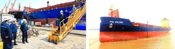 ?? H5647船是2150TEU(標(biāo)準(zhǔn)集裝箱)系列船的第三艘,總長(zhǎng)179.4米,型寬30.95米,型深17.4米,滿載2150箱,設(shè)計(jì)吃水9米;配置了廢氣再循環(huán)(EGR)系統(tǒng)和脫硫系統(tǒng),可降低硫氮化合物的排放,滿足國(guó)際海事組織(IMO)Tier III 排放要求,是一艘綠色、環(huán)保的船舶。