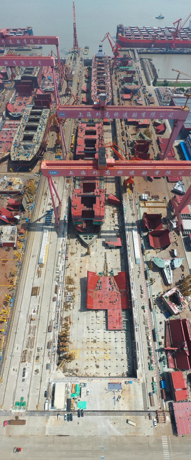 自2001年投產(chǎn)以來,外高橋造船在2號船塢先后建造了VLCC、FPSO、自升式海上石油鉆井平臺、40萬噸超大型礦砂船(VLOC),以及榮獲國家科技進(jìn)步獎特等獎的深水半潛式石油鉆井平臺“海洋石油981”號等一批品牌產(chǎn)品。