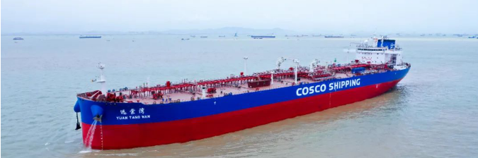 7月31日,中國船舶集團旗下廣船國際聯合中船貿易為中遠海能建造的11.4萬噸原油船3號船“遠棠灣”號命名交付。這是廣船國際7月命名交付的第三艘船,也標志著中遠海能與廣船國際簽訂的11.4萬噸原油船系列3艘船項目圓滿收官。