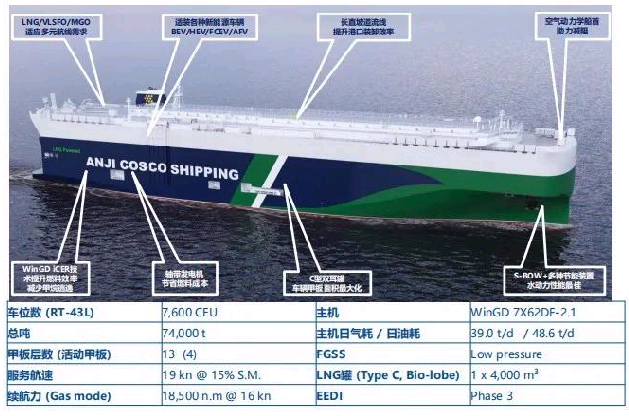 適應國際汽車工業的生產消費及運輸的變化趨勢,是一款符合國際最新規則的新一代超巴拿馬型汽車運輸船。
