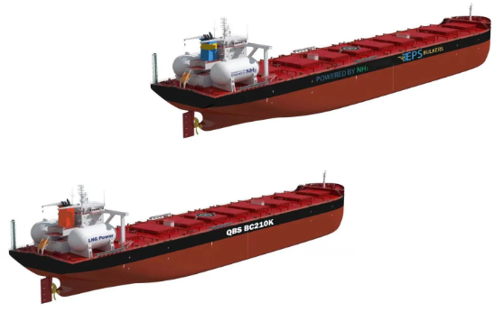 新的一年,北海造船聯(lián)合中船貿(mào)易,與新加坡東太平洋航運公司(EPS)簽署了4艘21萬噸Ammonia DF/DF Ready散貨船建造合同,與日本商船三井簽署了3艘21萬噸LNG雙燃料動力散貨船建造合同。