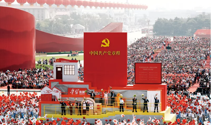 ▲2019年10月1日上午,慶祝中華人民共和國成立70周年大會在北京天安門廣場隆重舉行。這是群眾游行中的“從嚴(yán)治黨”方陣。新華社記者 蘭紅光/攝