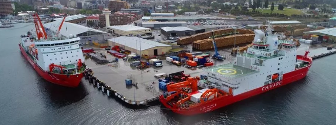 ????當(dāng)?shù)貢r(shí)間11月7日上午,搭載107名中國(guó)第36次南極考察隊(duì)員的“雪龍”號(hào)停靠澳大利亞霍巴特港口,與先行靠港的“雪龍2”號(hào)正式匯合。