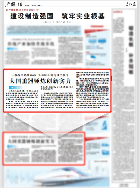 今天,人民日報產經專版在《產經觀察·著力發展實體經濟》第一期報道《建設制造強國筑牢實業根基》中將鏡頭對準了中國船舶集團。