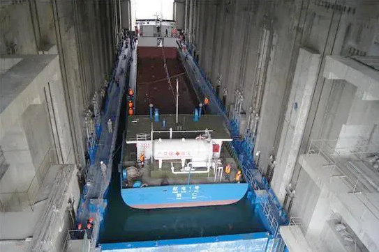 而在上述水電站過船設施工程建設中,也出現(xiàn)了中國船舶集團旗下院所、船廠、配套企業(yè)等相關單位的身影。烏江構皮灘水電站通航工程被視為貴州融入長江、通江達海的關鍵工程。該工程線路總長2306米,概算總投資29.51億元,設計通航標準為四級航道,最高通航水頭達199米,是世界上通航水頭最高、水位變幅最大的通航工程。