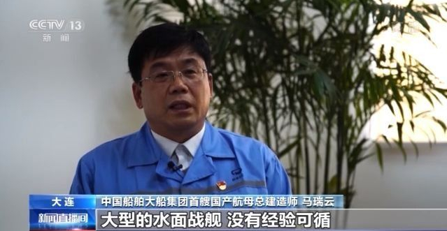 中國船舶大船集團首艘國產(chǎn)航母總建造師馬瑞云:第一次生產(chǎn)這種超過300多米長的大型的水面戰(zhàn)艦,沒有經(jīng)驗可循。