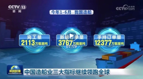 ??數據顯示,今年1—6月,我國造船完工量、新接訂單量和手持訂單量三大指標分別為2113萬載重噸、3767萬載重噸、12377萬載重噸,分別占世界總量的49.6%、72.6%和53.2%,以修正總噸計分別占47.3%、67.2%和46.8%,均位居世界第一,中國也成為唯一一個三大指標實現全面增長的國家。