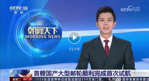 7月25日 央視《新聞聯播》 7月25日 央視《朝聞天下》 7月25日 央視《新聞直播間》 航速測速 感受郵輪強勁動力 記者探訪首艘國產大型郵輪推進系統 7月25日 新華社 7月26日 人民日報 7月26日 央視《朝聞天下》 記者獨家記錄首艘國產大型郵輪首次試航 一日四餐 保障1200多名試航人員飲食 7月26日 中國日報