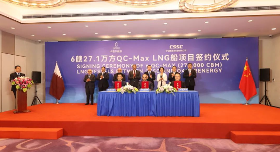 9月9日,三方新簽了6艘全球最大27.1萬立方米超大型LNG船訂單。至此,三方已累計(jì)簽訂24艘27.1萬立方米超大型LNG船、12艘17.4萬立方米大型LNG船,以載氣量計(jì),位居全球各船廠之首。卡塔爾能源事務(wù)國務(wù)大臣、卡塔爾能源總裁兼首席執(zhí)行官薩阿德·謝里達(dá)·阿爾卡比,上海市副市長陳杰,中國船舶集團(tuán)黨組成員、總會計(jì)師賈海英等出席簽約儀式。