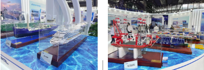 重點展示奮力摘取造船業(yè)最后一顆明珠的首制國產(chǎn)大型郵輪,以風、光、甲醇裝備等為主體的綠色船舶等高端海洋裝備、以“商業(yè)模式創(chuàng)新+創(chuàng)新技術(shù)應(yīng)用”為引領(lǐng)的海洋文旅、深海養(yǎng)殖、海上風電等新興海洋經(jīng)濟裝備、踐行“服務(wù)國家戰(zhàn)略”企業(yè)使命的與自然資源部和廣東省合作項目成果等,展現(xiàn)了中國船舶集團作為世界第一造船集團的總體實力、企業(yè)使命。