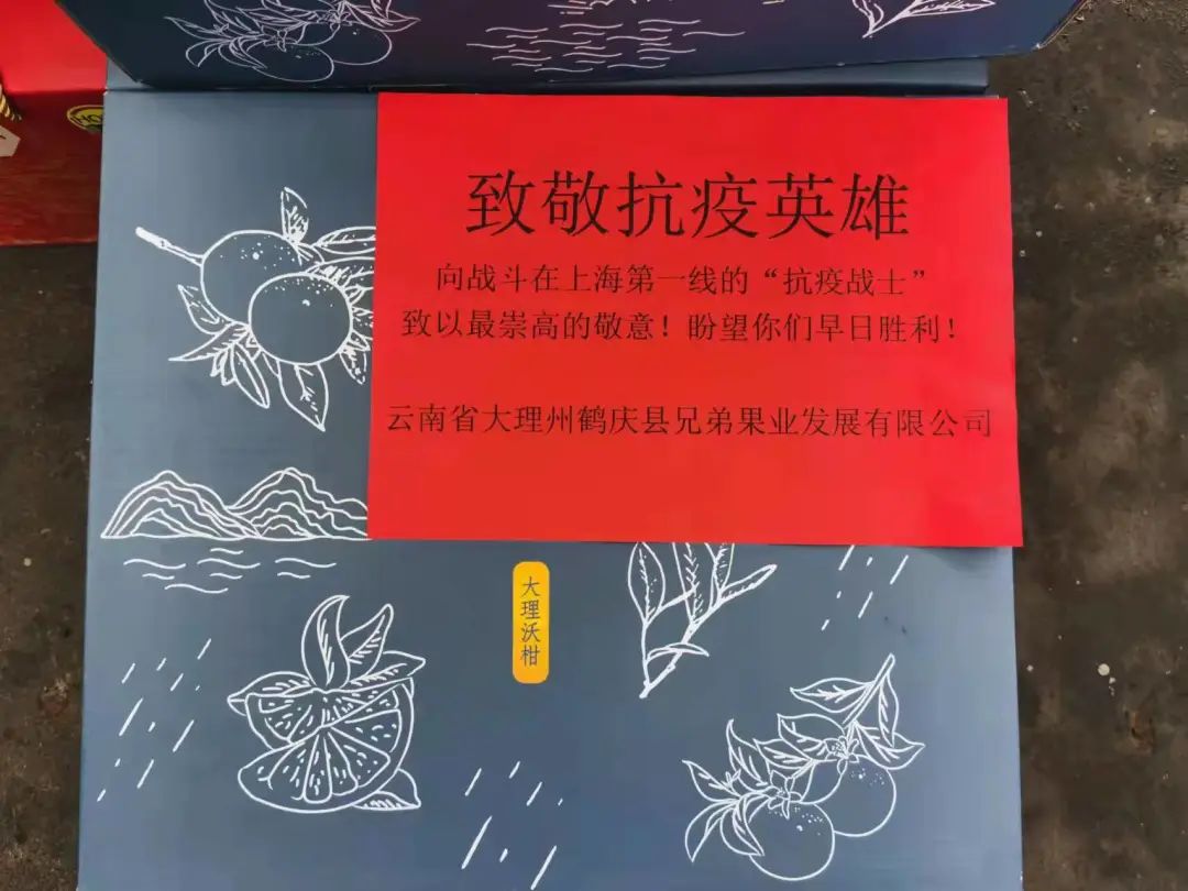3月22日,一輛滿載沃柑、土雞、土豆、牛奶等價值近45萬元的云南省鶴慶縣生態農產品的貨車,帶著28萬鶴慶人民的深情厚誼與衷心祝福緊急馳援中國船舶集團旗下江南造船和上海市浦東新區新場鎮、惠南鎮。